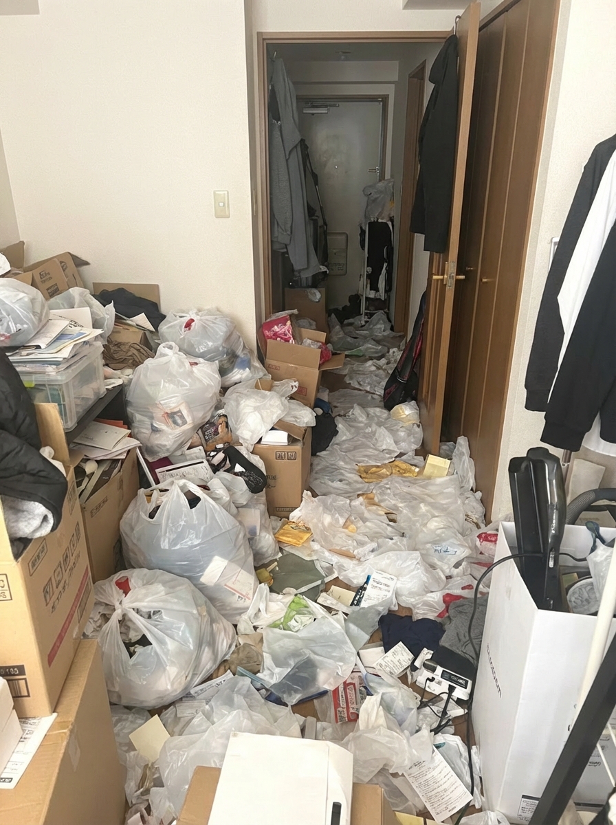 1R(ワンルーム)のゴミ屋敷片付け実績 兵庫県 三木市 住宅街 マンション