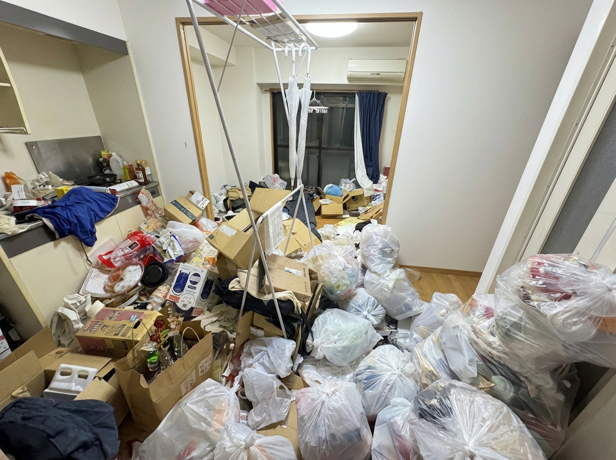 1LDKのゴミ屋敷片付け実績 茨城県 守谷市 駅前 マンション