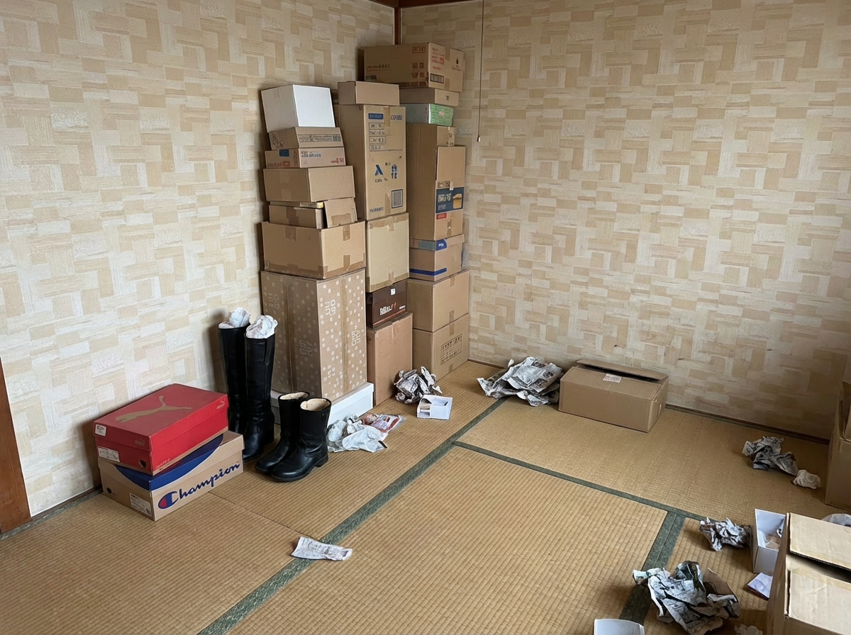 仕事が忙しく溜まった荷物が部屋を埋め尽くしていた