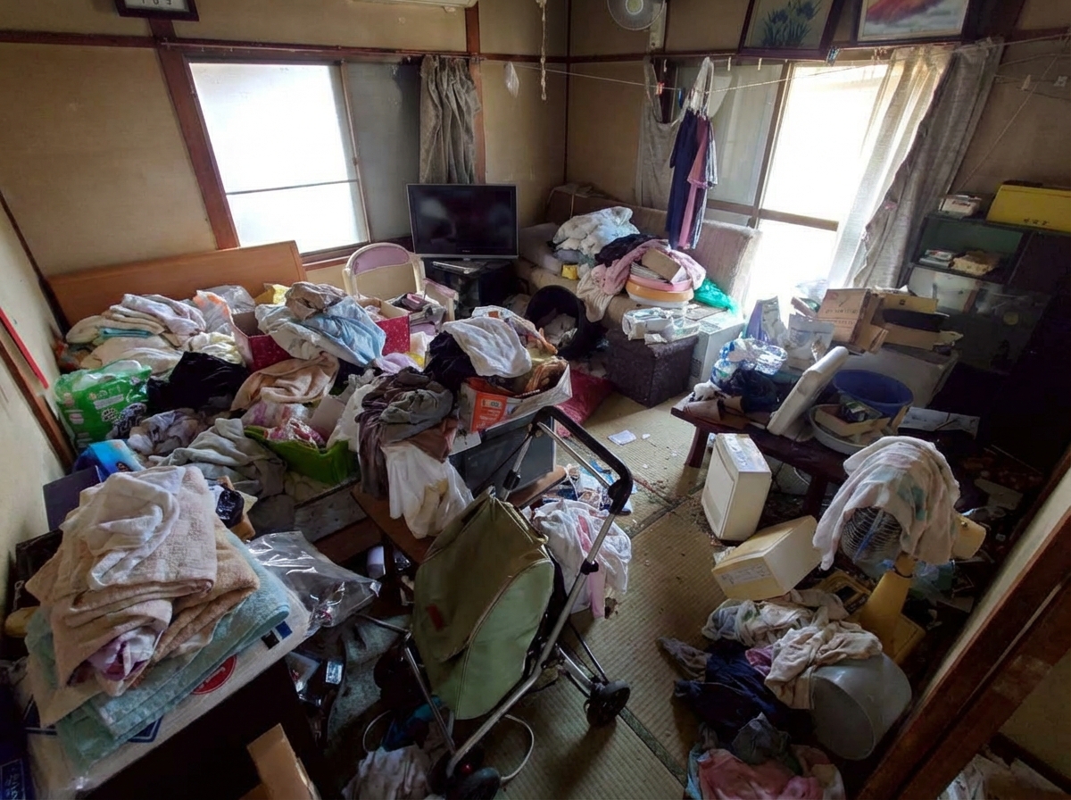 3LDKのゴミ屋敷片付け実績 大阪府 大阪市中央区 住宅街 アパート
