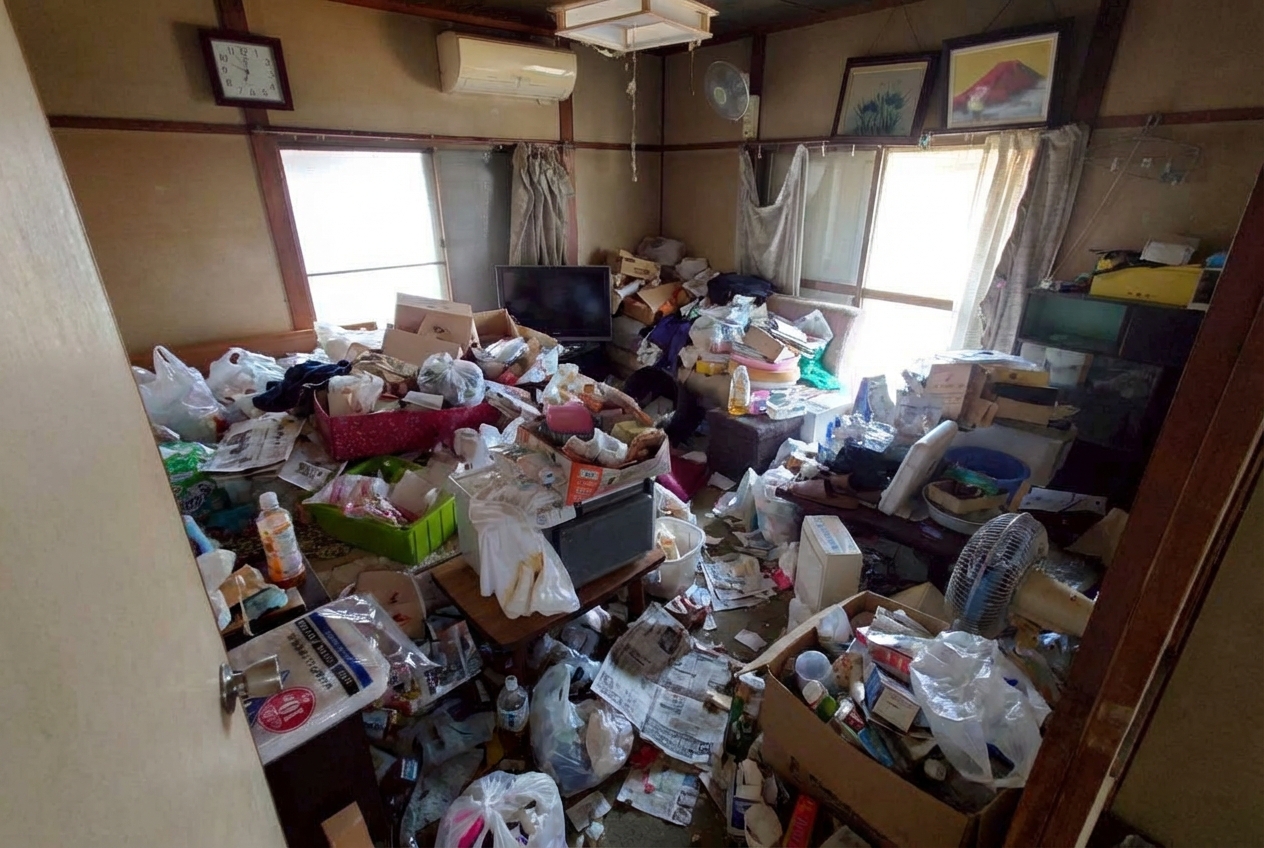 1Kのゴミ屋敷片付け実績 福岡県 うきは市 住宅街 戸建て